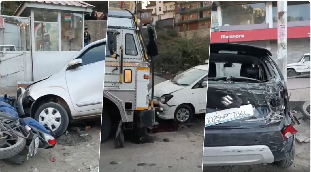 शिमला के मल्याणा में रात के समय एक ट्रक HP11 B-2118 इतना बेकाबू हुआ कि जो भी गाड़ी उसके सामने आई उसे रौंदता हुआ निकल गया. ट्रक से टकरान के कारण गाड़ियों को भारी नुकसान पहुंचा है. आखिर में ट्रक सड़क किनारे रुका. ट्रक के आगे के दोनों पहिए निकल चुके थे. ट्रक की रफ्तार का कहर इतना था कि उसने सड़क किनारे खड़ी 4 कारों और 5 मोटरसाइकिलों को टक्कर मारकर बुरी तरह क्षतिग्रस्त कर दिया. हादसे के बाद ट्रक मौके पर ही फंस गया, जबकि चालक घटनास्थल से ट्रक को छोड़कर फरार हो गया. ट्रक की रफ्तार इतनी अधिक थी की चालक उसे काबू ही नहीं कर पाया, जब तक ट्रक रुकता काफी देर हो गई थी और लोगों का भारी नुकसान हो चुका था