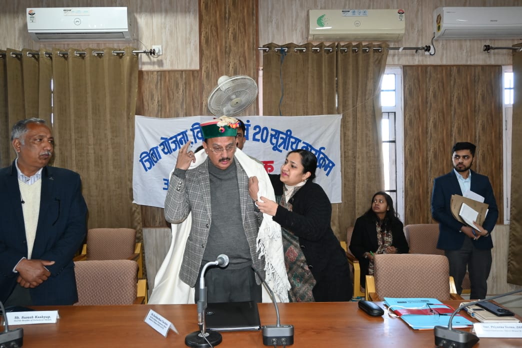 नाहन, 22 जनवरी- उद्योग, तथा श्रम एवं रोजगार मंत्री हर्षवर्धन चौहान ने आज जिला सिरमौर के नाहन में जिला योजना, विकास एवं 20 सूत्रीय कार्यक्रम की समीक्षा बैठक की अध्यक्षता की। विधायक पांवटा साहिब विधानसभा क्षेत्र सुखराम चौधरी, उपयुक्त सिरमौर प्रियंका वर्मा, पुलिस अधीक्षक निश्चिंत सिंह नेगी, कार्यक्रम के सरकारी एवं गैर सरकारी सदस्य भी बैठक में उपस्थित रहे।