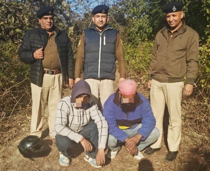 पुलिस थाना सदर नाहन की पुलिस टीम ने गश्त के दौरान शहर के कांशीवाला के पास 2 युवकों को नशे का सेवन करते हुए रंगे हाथ पकड़ा है। मौके से नशा करने का सामान भी बरामद किया है। युवकों की पहचान गुरप्रीत सिंह निवासी कांशीवाला (नाहन) और तन्मय चौहान निवासी तेली मोहल्ला कच्चा टैंक के रूप में हुई है। इस संबंध में पुलिस थाना सदर नाहन में आरोपियों के खिलाफ केस दर्ज किया गया है। एसपी सिरमौर एनएस नेगी ने कहा कि नशा व्यक्ति के जीवन, स्वास्थ्य, परिवार और समाज के लिए अत्यंत घातक है। नशे की लत युवाओं का भविष्य बर्बाद कर देती है और समाज में अपराध को बढ़ावा देती है।